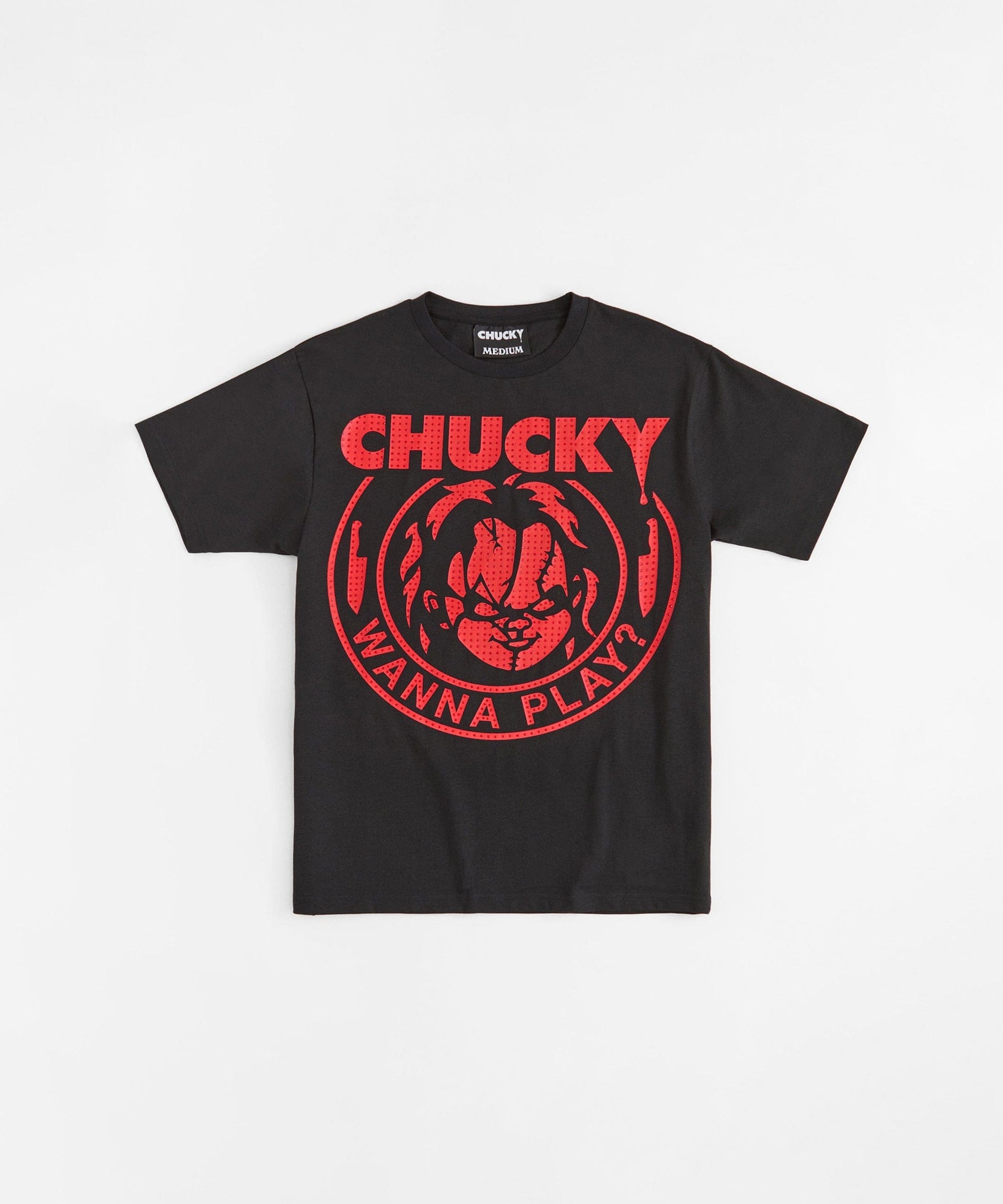 Chucky Rhinestone Wanna Play Short Sleeve Tee - Black
