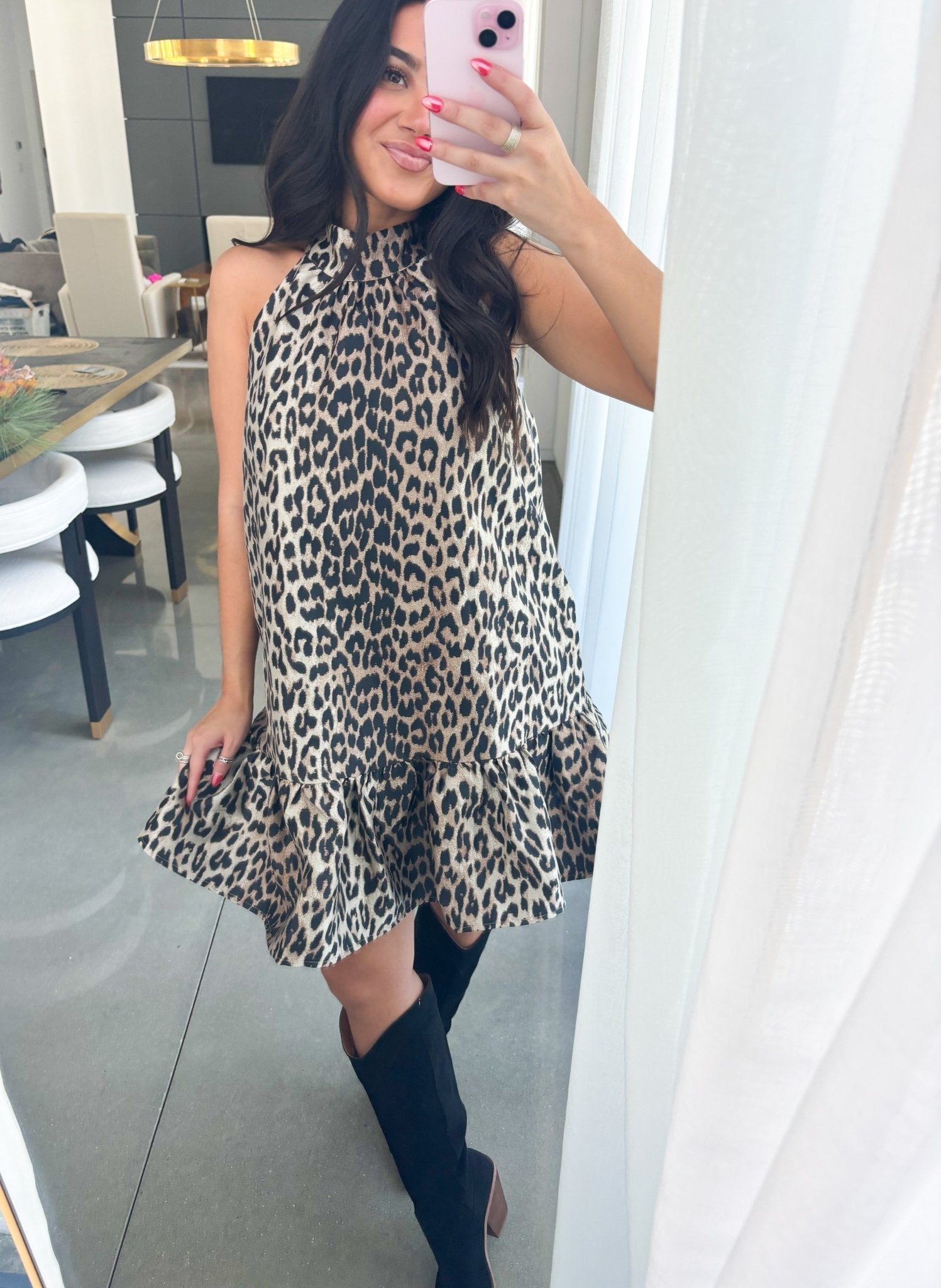 Turn heads the moment you walk in with the Ever So Sassy Sleeveless Dress. Designed in a luxe satin-like leopard print, this dress delivers instant confidence and a dash of sass. The sleeveless cut with ruffle hem adds playful movement, while the tie-back detail keeps it chic and feminine. Whether you’re headed to date night, cocktails, or a night out with the girls, this dress is your ticket to effortless glam. 100% Polyester.