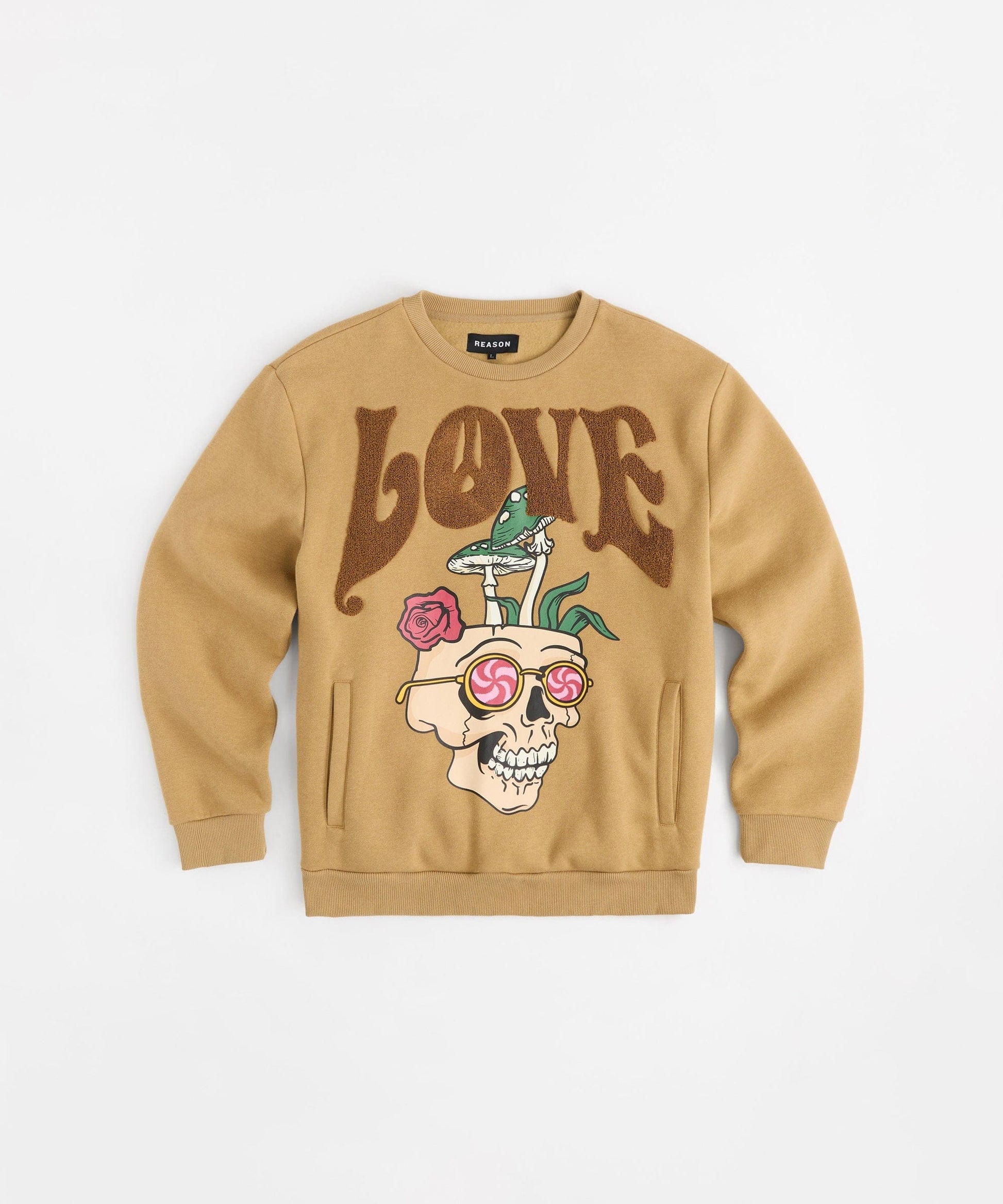 Love Hate Front And Back Chenille Patched Crewneck - Khaki