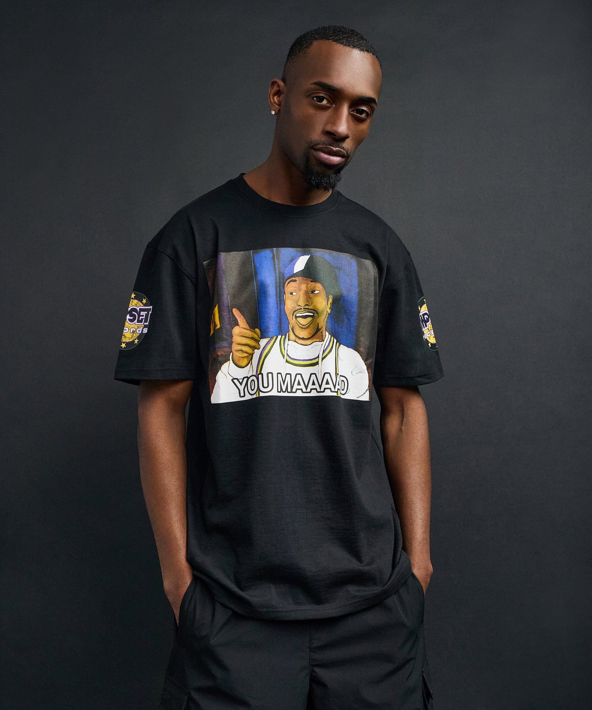 Mad Sleeve Print Short Sleeve Tee - Black