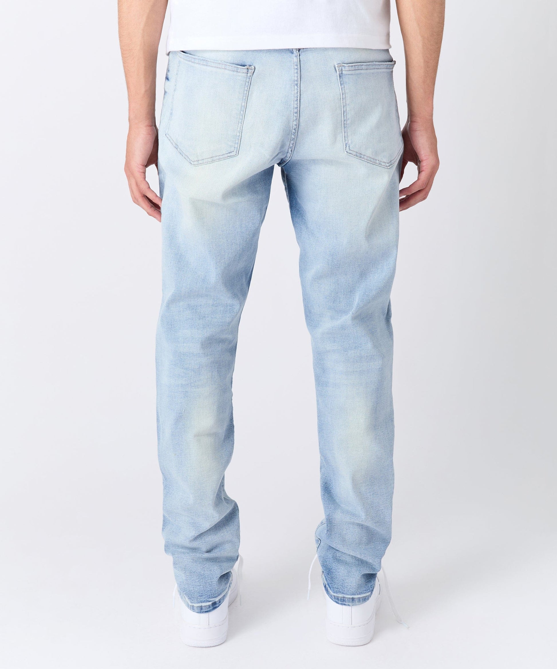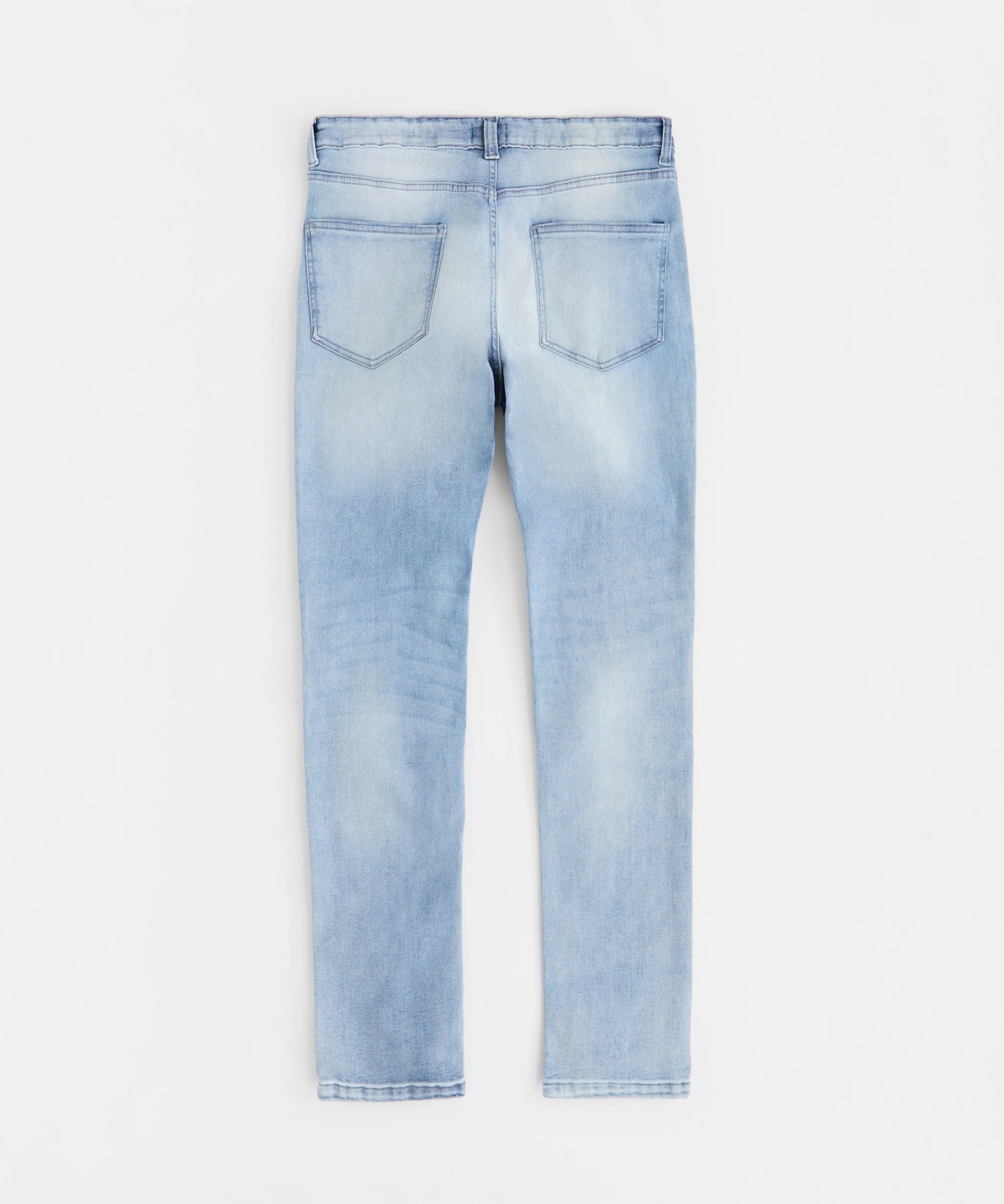 Ripped And Repaired Washed Denim Jeans - Light Blue