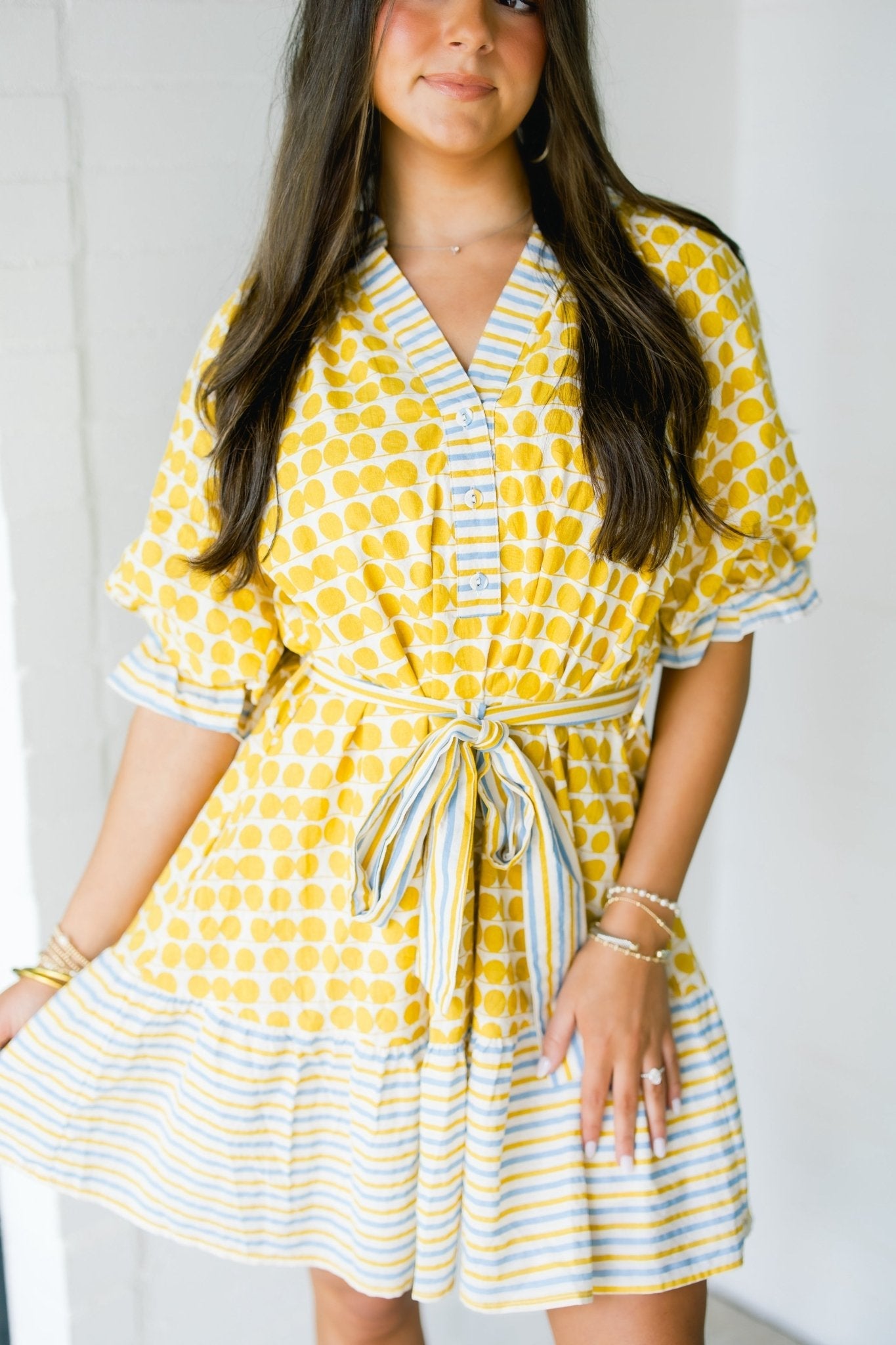 The Marigold Fields Mix Dress brings instant sunshine to your wardrobe—easy, fun, and endlessly wearable!