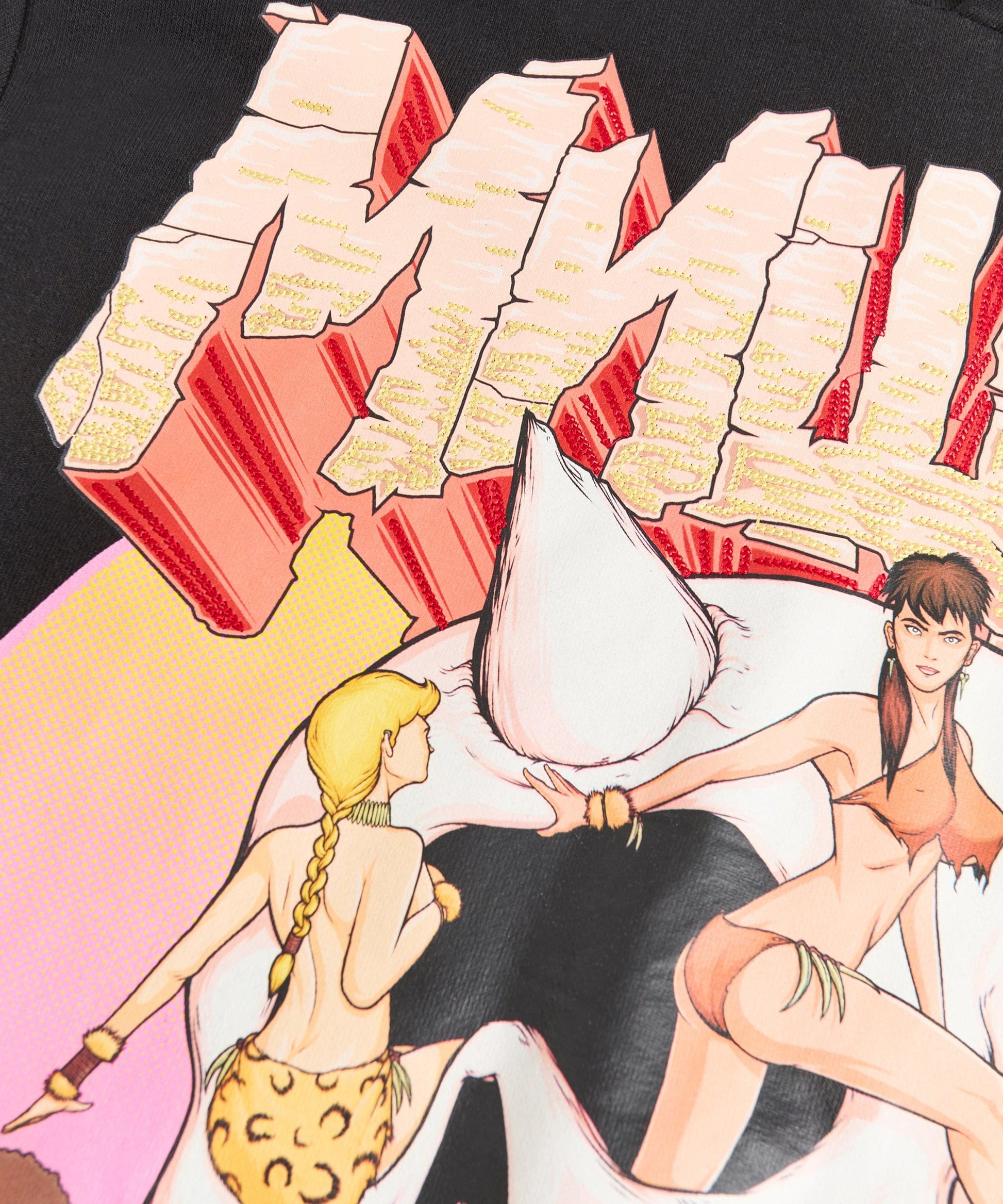 Mishka Graphic Print Embroidered Hoodie - Black