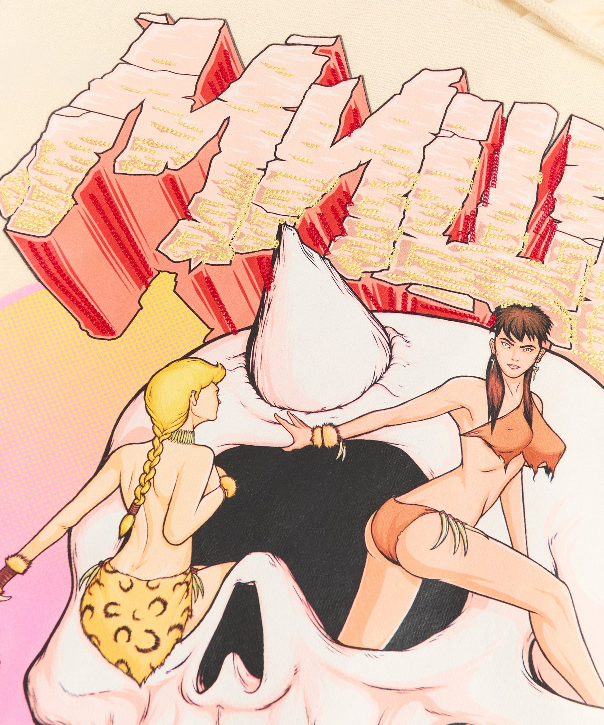 Mishka Graphic Print Embroidered Hoodie - Khaki