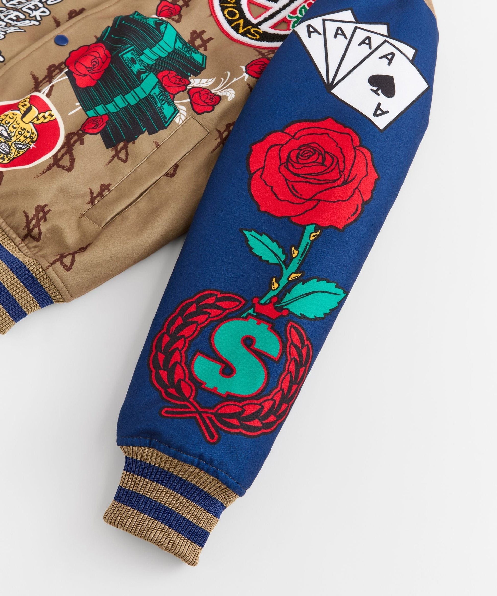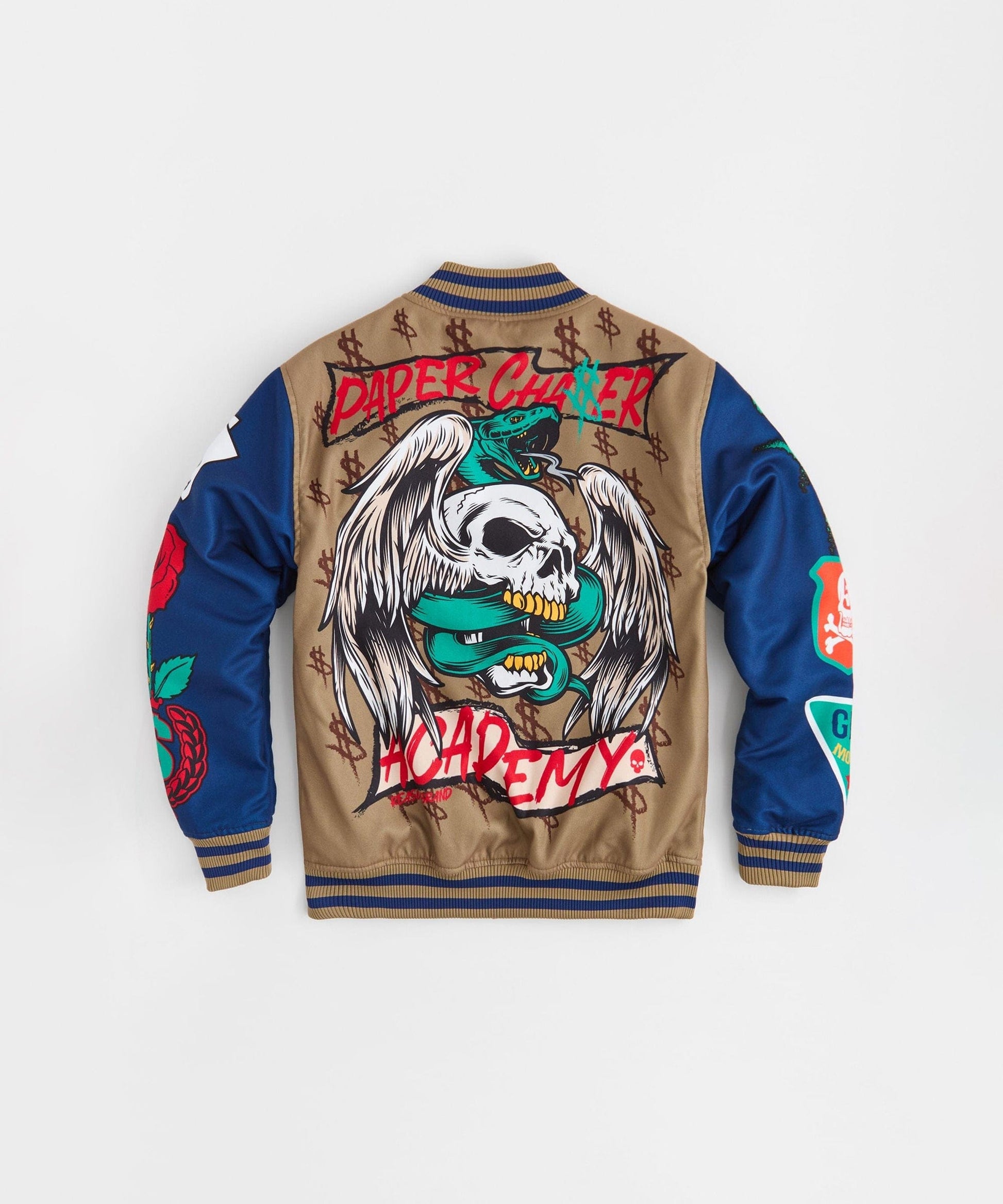 Paper Chaser Chenille Patched Varsity Jacket - Khaki