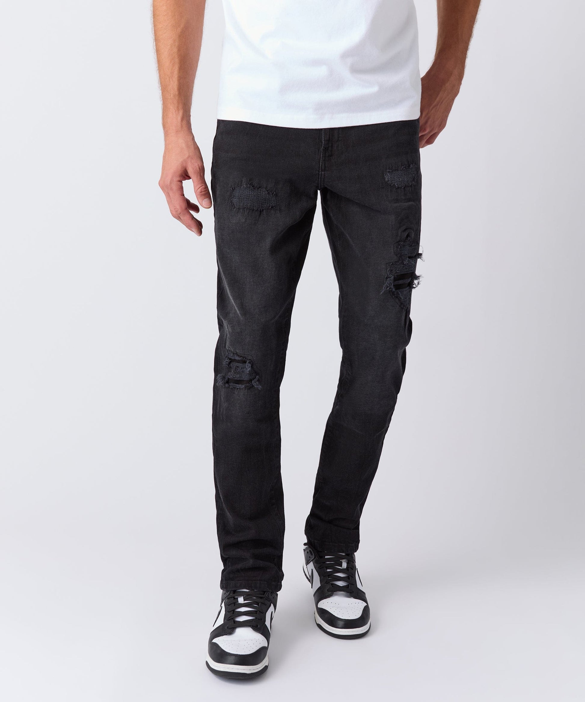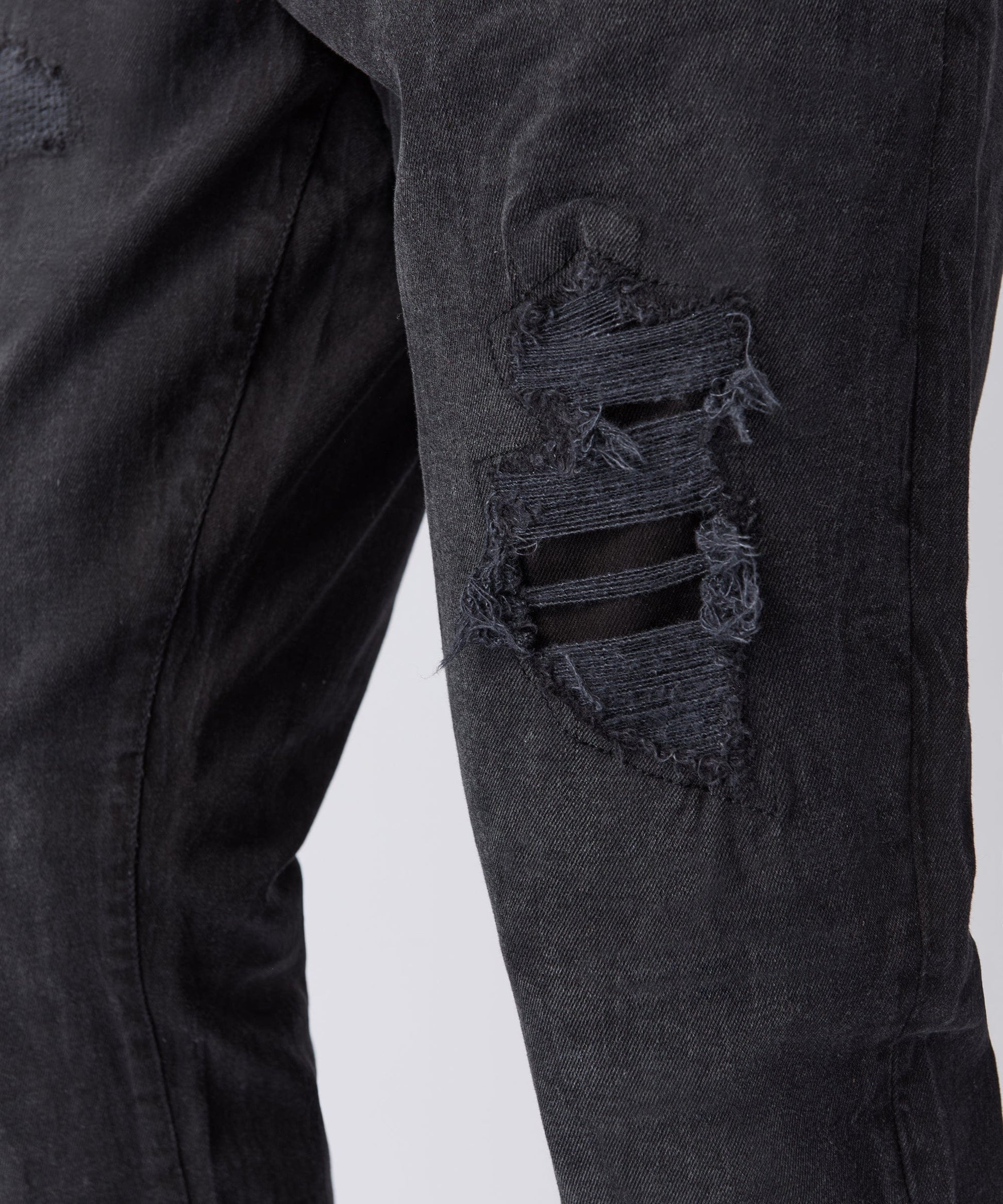Rip and Repaired Denim Jeans - Black