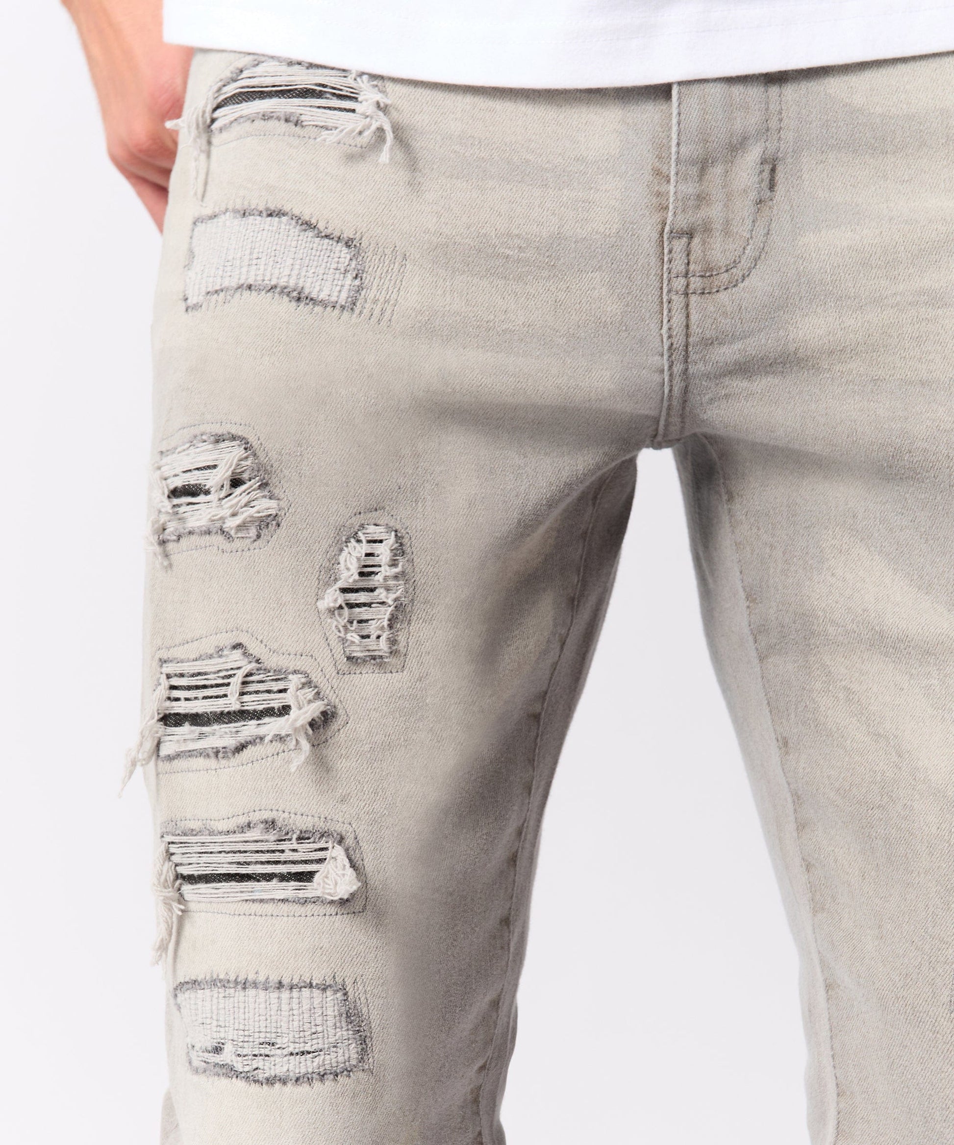 Rip And Repair Denim Jeans - Grey
